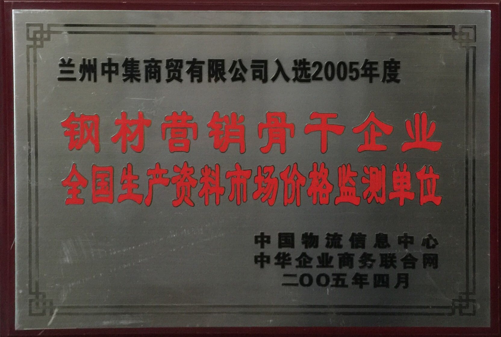 2005年度鋼材營(yíng)銷骨干企業(yè)·全國(guó)生產(chǎn)資料市場(chǎng)價(jià)格監(jiān)測(cè)單位