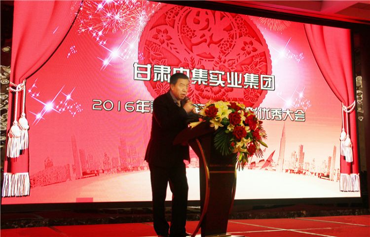 甘肅中集實業(yè)集團2016年春節(jié)團拜會暨表彰優(yōu)秀大會于2016年2月5日下午在金帝國酒店一樓宴會廳拉開了序幕。大會伊始,由總裁助理董廣科宣讀《關(guān)于表彰2015年度優(yōu)秀管理者、優(yōu)秀員工及優(yōu)秀團隊的決定》,并由董事長周吉杰、副總裁周啟濤、周啟濱向獲得優(yōu)秀經(jīng)理、優(yōu)秀員工及優(yōu)秀團隊榮譽的員工頒發(fā)證書、獎杯等,對員工一年來的辛苦工作給予了鼓勵與高度的認同。