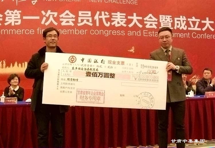 同時(shí),甘肅省青年企業(yè)家商會副會長、甘肅中集實(shí)業(yè)集團(tuán)董事長周啟濤代表甘肅省青年企業(yè)家商會現(xiàn)場向東鄉(xiāng)族自治縣捐贈100萬元,用于建造東鄉(xiāng)縣石家溝村幼兒園。