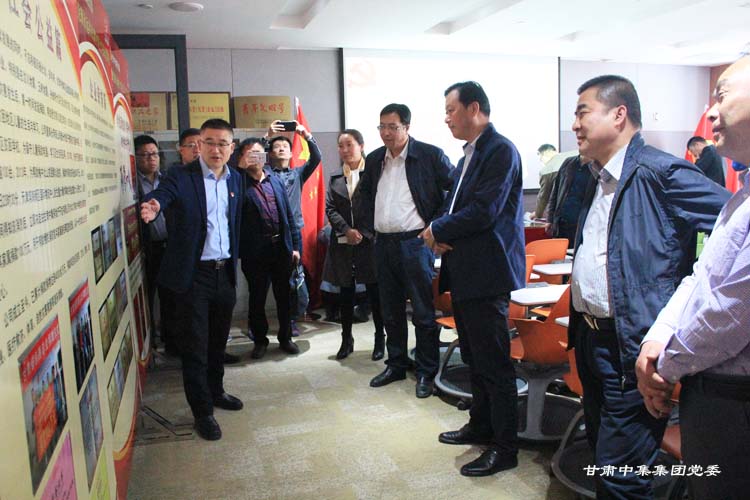2018 年 4 月 17 日下午,天水市市委組織部副部長、市非公經(jīng)濟(jì)和社會組織黨工委書記丁曉來、天水市工商局黨組成員、副局長、市非公經(jīng)濟(jì)組織黨委書記聶惠仁及天水市 12 家非公企業(yè)黨組織書記一行蒞臨集團(tuán)公司觀摩調(diào)研非公企業(yè)黨建工作;