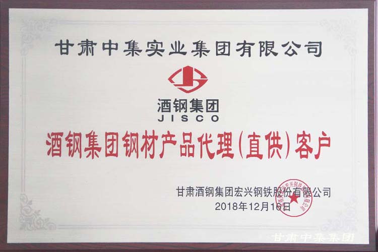 2018年12月12日,由酒鋼集團宏興鋼鐵股份有限公司組織的“2019年酒鋼碳鋼產(chǎn)品推介暨客戶座談會”及“2018年度全國百家金牌供應(yīng)商頒獎典禮”在蘭州皇冠假日酒店召開。甘肅中集實業(yè)集團有限公司及下屬子公司蘭州中集商貿(mào)有限公司、天水中集商貿(mào)有限公司榮獲“酒鋼集團鋼鐵產(chǎn)品代理(直供)客戶”及“2018年度金牌代理商”殊榮。