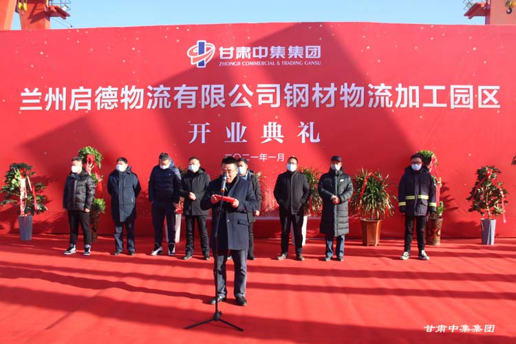 2021年1月12日上午10:18分,甘肅中集實(shí)業(yè)集團(tuán)有限公司旗下蘭州啟德物流有限公司河口鋼材物流加工園區(qū)開業(yè)慶典在甘肅物產(chǎn)集團(tuán)河口物流園隆重舉行。甘肅中集實(shí)業(yè)集團(tuán)有限公司黨委書記、董事長(zhǎng)周啟濤隆重宣布物流園開業(yè)。酒鋼集團(tuán)、八一鋼鐵集團(tuán)、內(nèi)蒙古包鋼集團(tuán)、甘肅省物產(chǎn)集團(tuán)河口物流園、甘肅省鋼材商會(huì)、物流園轄區(qū)及公司合作伙伴等100余名領(lǐng)導(dǎo)嘉賓參加開業(yè)慶典。