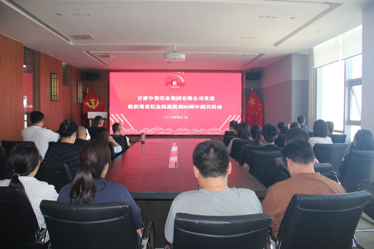 2025年9月3日上午,紀念中國人民抗日戰(zhàn)爭暨世界反法西斯戰(zhàn)爭勝利80周年大會及閱兵活動在北京天安門廣場隆重舉行。為銘記歷史、緬懷先烈,傳承偉大抗戰(zhàn)精神,甘肅中集實業(yè)集團有限公司黨委組織全體黨員、入黨積極分子、中高層管理人員共同觀看紀念抗戰(zhàn)勝利80周年大會盛況,以實際行動接受黨性教育和愛國精神洗禮。